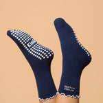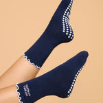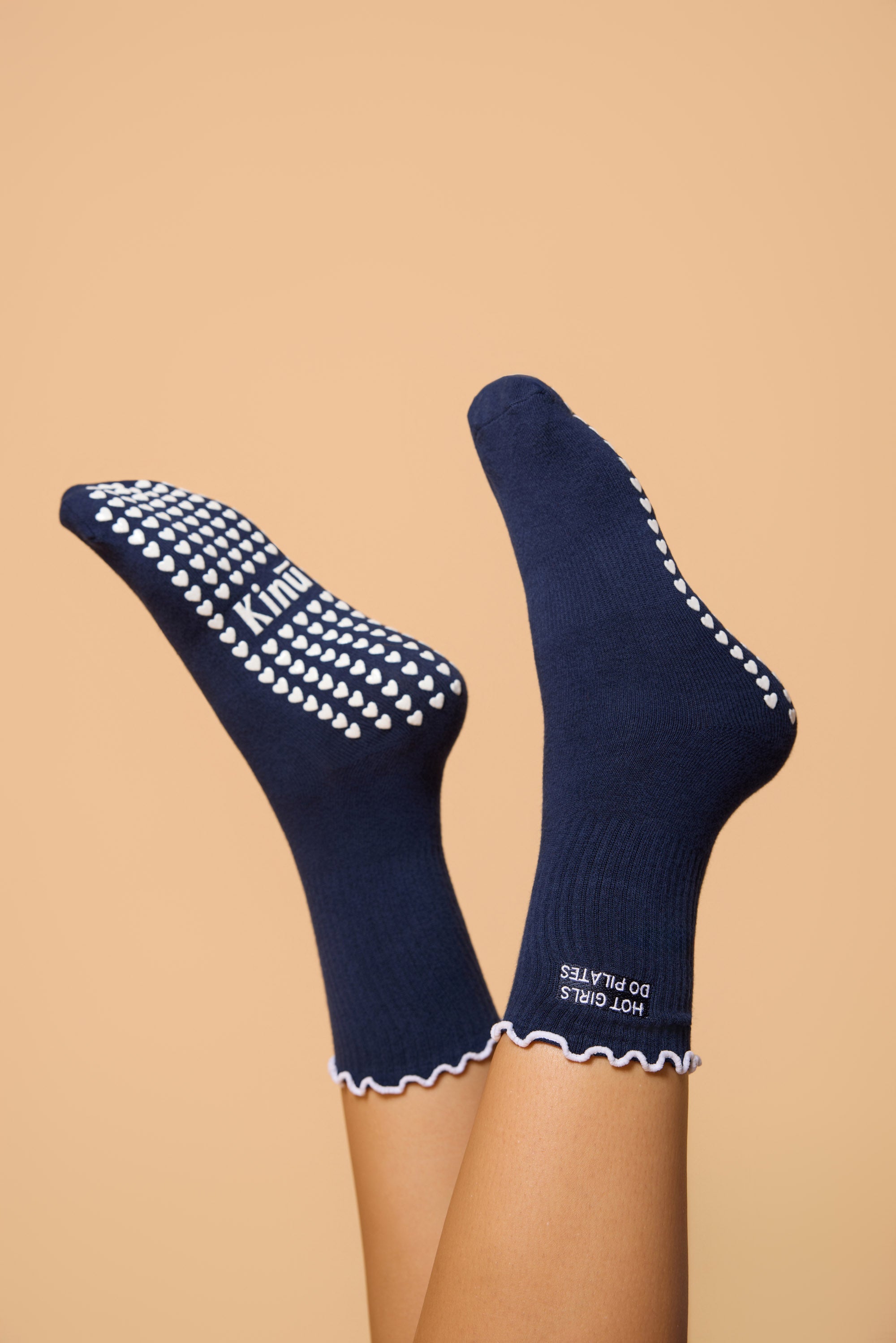 The Hot Girls Do Pilates socks are made for the women who show up, do the work and look good while doing it. Designed in navy blue cotton fabric with a white frill, these socks are embroidered with the phrase “Hot Girls Do Pilates”, which brings out the main character energy in every woman. The Hot Girls Do Pilates socks features built in arch support and white heart grips, which provides a strong grip during workouts and daily movement.